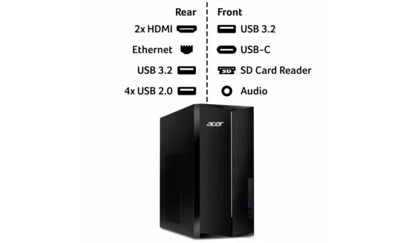The Acer TC-1785 desktop tower is a sleek and versatile choice for both home and office use. Powered by an Intel Core i7 processor and 8GB of RAM, it’s more than capable of handling a variety of tasks, from everyday productivity to more demanding applications. With a 1TB SSD, you have ample storage for all your important files and projects. Thanks to Wi-Fi 6E integration, you’ll enjoy fast, reliable internet connections right out of the box. The TC-1785 also features a wide range of ports, allowing you to connect multiple displays, as well as various peripherals like keyboards, mice, printers, and more.