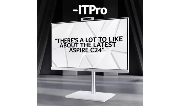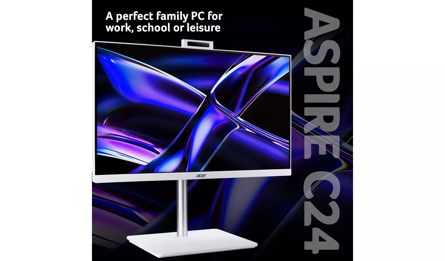 The Acer C24-B all-in-one desktop PC combines impressive performance with a sleek, modern design. Powered by the efficient Intel N150 CPU and 8GB of RAM, it handles everyday tasks with ease. The 256GB SSD provides plenty of space for your apps and files, ensuring smooth and quick access. The 23.8-inch Full HD display, boasting a 120Hz refresh rate, offers sharp visuals and fluid motion—ideal for both work and play. All of this is housed in a stylish frame that will complement any home or office setup.
