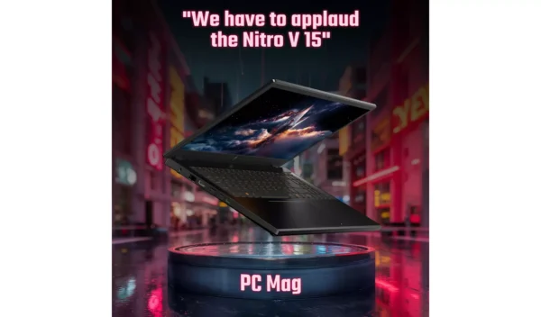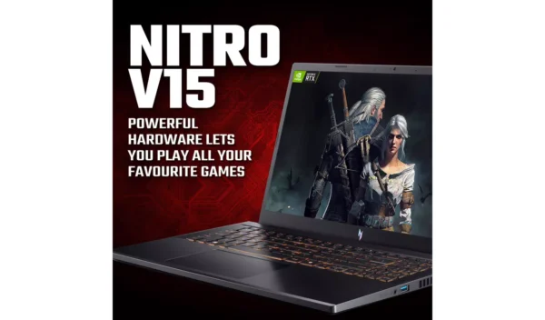 The Acer Nitro V15 gaming laptop delivers exceptional performance and a breathtaking display for an immersive gaming experience. Powered by an Intel Core i5 processor and 16GB of RAM, the Nitro V15 has all the horsepower you need. It also comes with the new NVIDIA GeForce RTX 5060 GPU, which leverages AI to boost your game’s framerate and resolution, ensuring smoother and sharper gameplay. The 15.6-inch Full HD (1920×1080) screen features a blazing 165Hz refresh rate, offering a perfect balance of sharp visuals and fluid, blur-free motion.