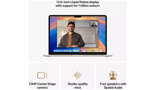 The 13.6-inch Liquid Retina display supports one billion colors, making photos, videos, and text come to life with stunning contrast and detail.