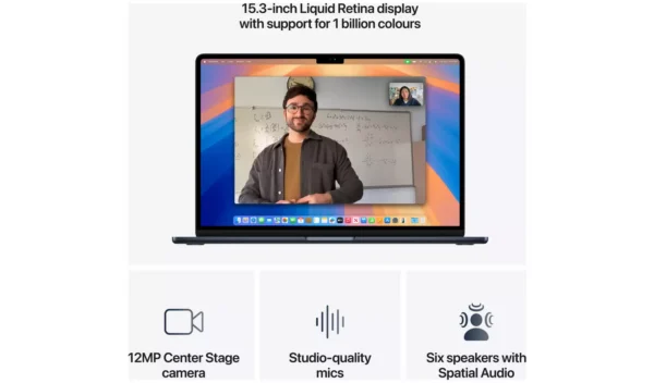 The 13.6-inch Liquid Retina display supports one billion colors, making photos, videos, and text come to life with stunning contrast and detail.