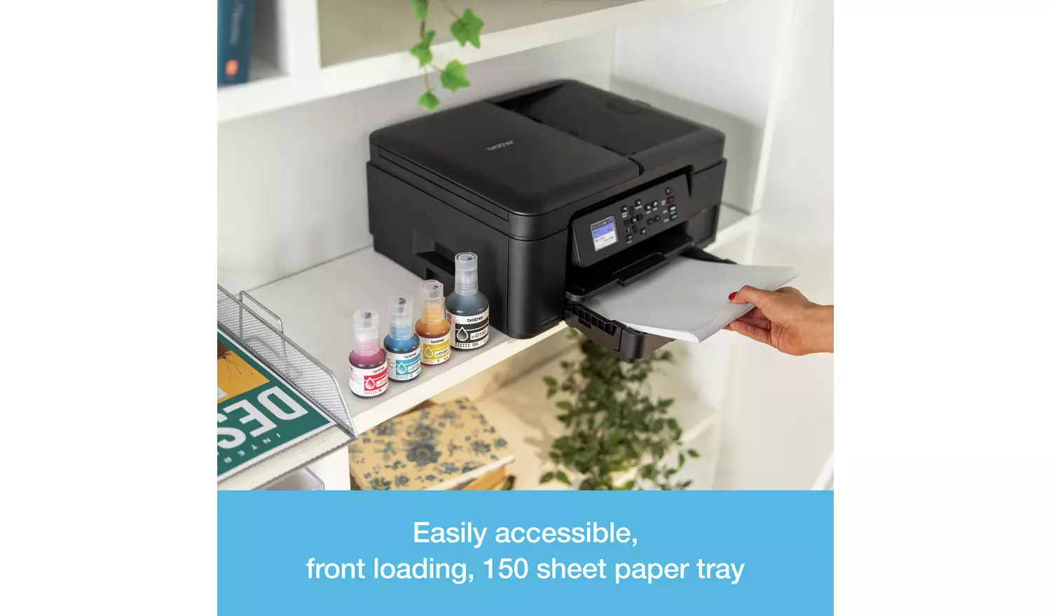 Setting up and using the DCP-T780DW is a breeze, whether you’re working from your home office, living room, or kitchen. With the Brother Mobile Connect app, you can print from anywhere, monitor ink usage, and quickly reorder genuine ink when you need it.