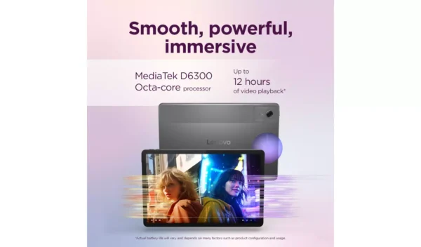 Whether you’re studying or relaxing, the Lenovo Idea Tab’s MediaTek D6300 octa-core processor boosts performance by up to 70%, delivering smooth, lag-free performance. With quad Dolby Atmos speakers, your entertainment is powered by rich, immersive sound for nonstop fun.